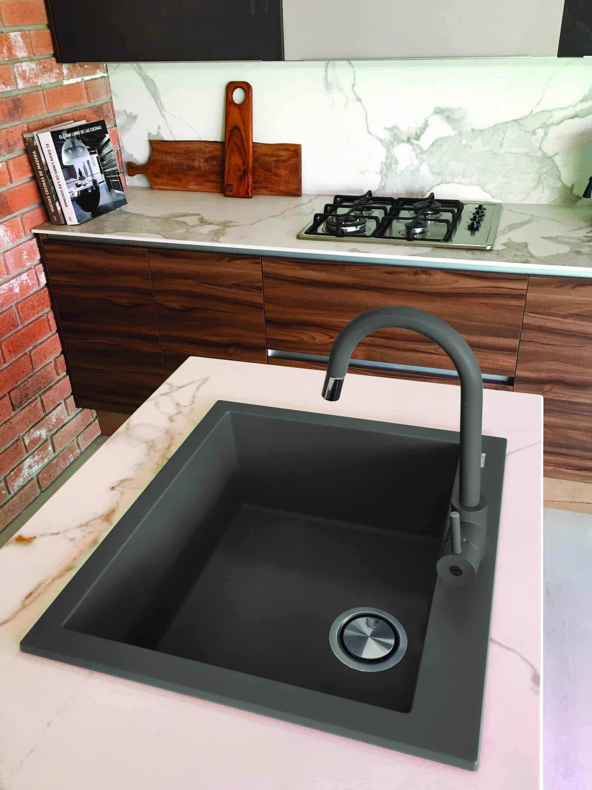 金属颗粒、石英和花岗岩赋予水槽金属色调,与现代环境和不锈钢完美搭配。易于清洁、卫生、耐划痕、耐化学品和高温。