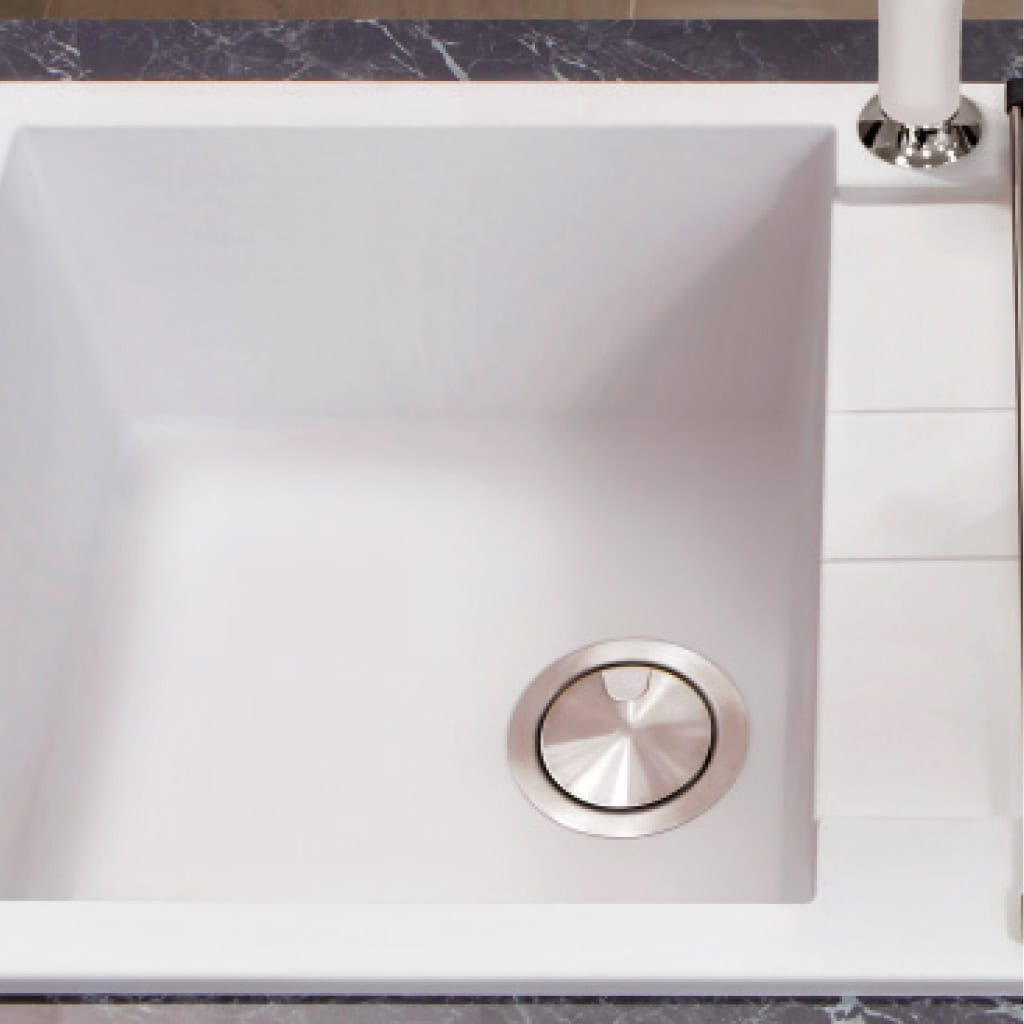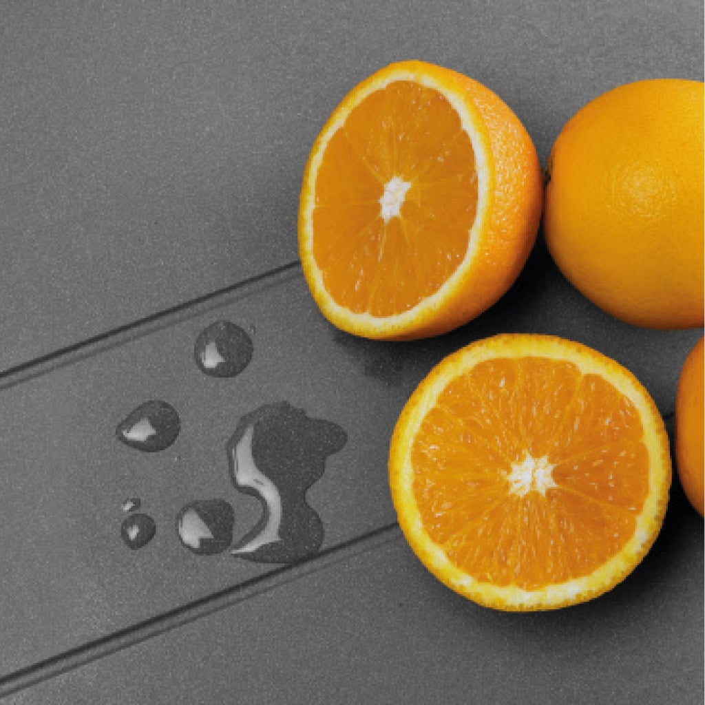 金属颗粒、石英和花岗岩赋予水槽金属色调,与现代环境和不锈钢完美搭配。易于清洁、卫生、耐划痕、耐化学品和高温。