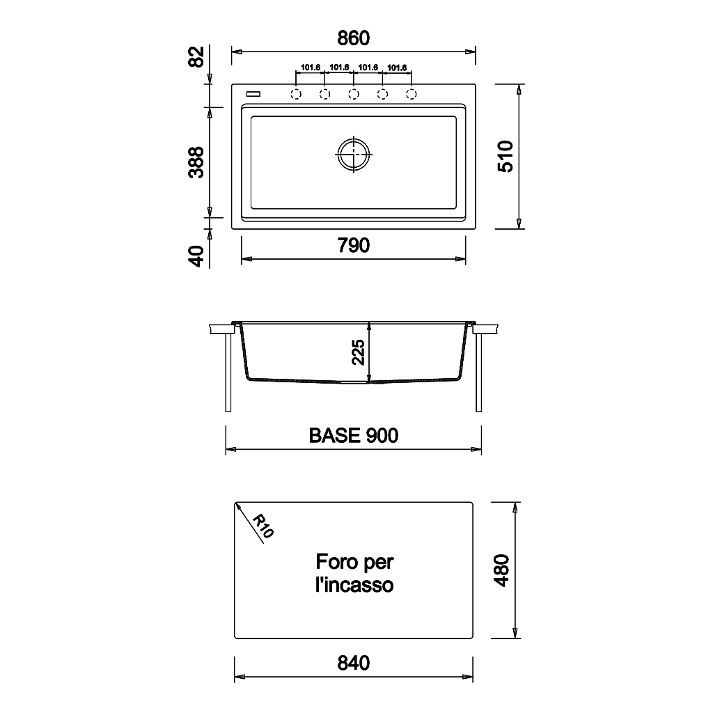| 凹陷孔 | 840 x 480 mm |