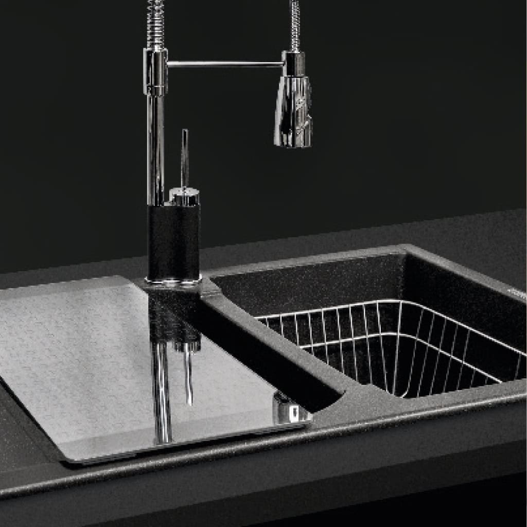 金属颗粒、石英和花岗岩赋予水槽金属色调,与现代环境和不锈钢完美搭配。易于清洁、卫生、耐划痕、耐化学品和高温。
