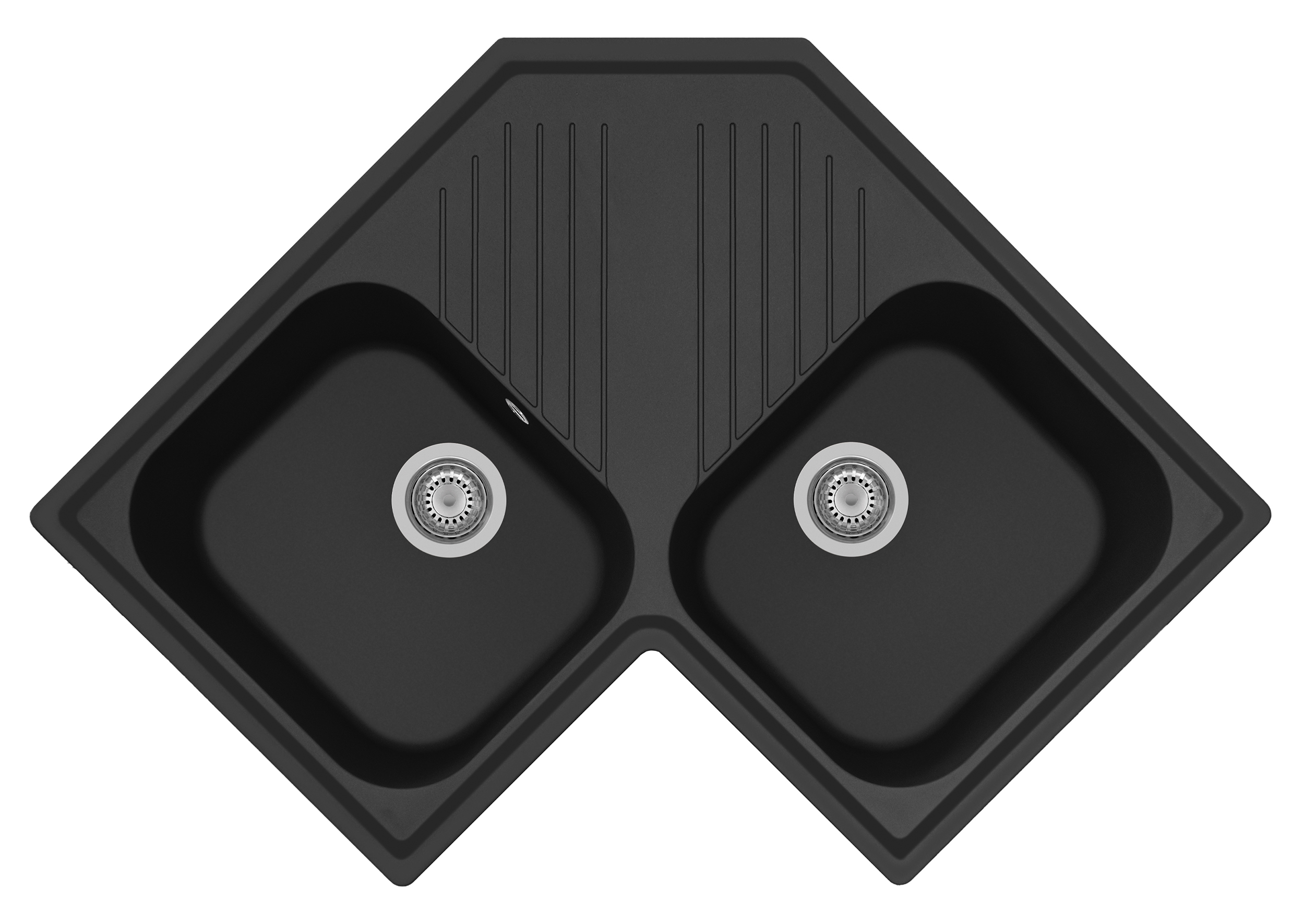 830×500毫米 - 角落水槽,有两个碗和滴水盘。