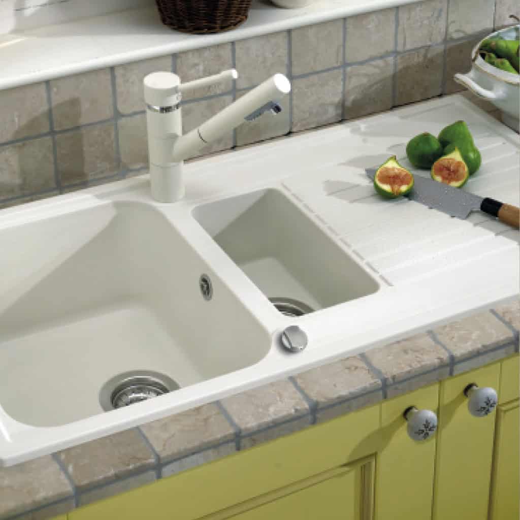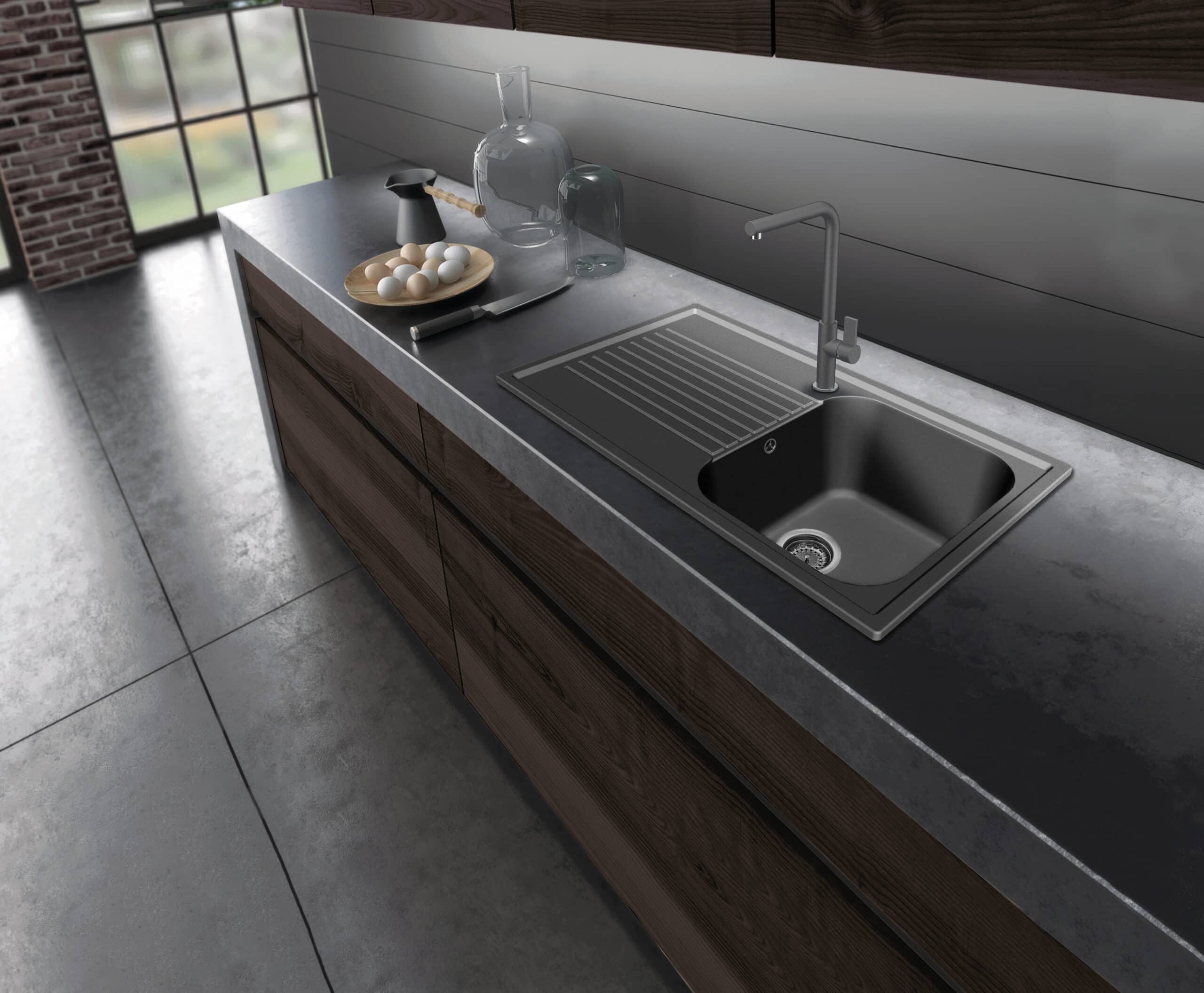 金属颗粒、石英和花岗岩赋予水槽金属色调,与现代环境和不锈钢完美搭配。易于清洁、卫生、耐划痕、耐化学品和高温。