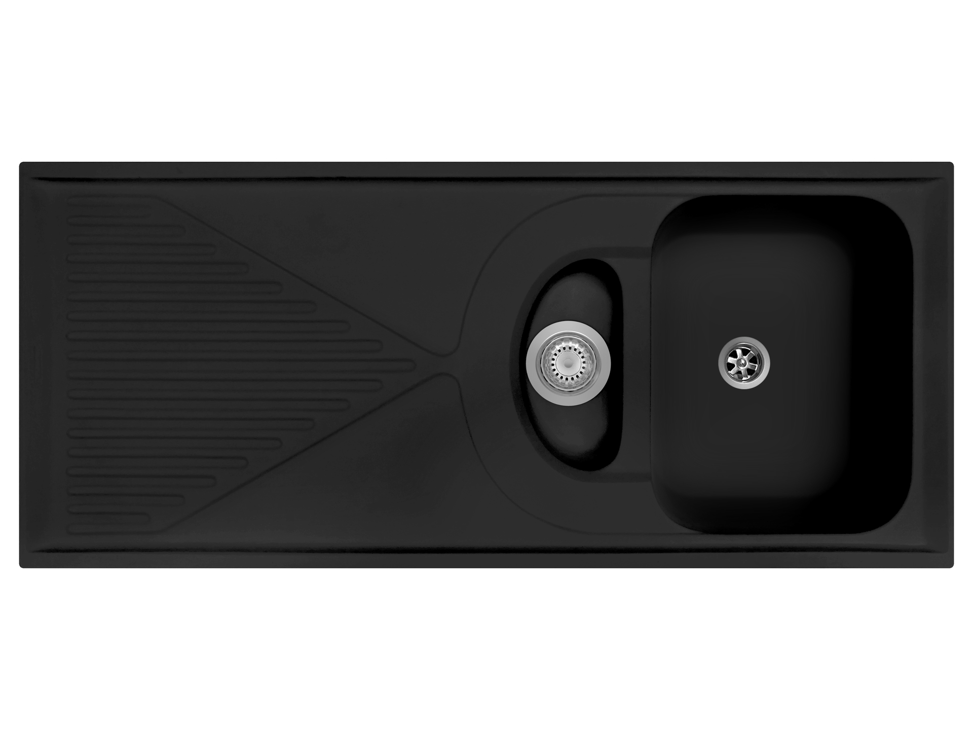 1160×500毫米 - 一个半碗水槽加滴水盘,可翻转,有预钻孔,可安装one水龙头和配件。