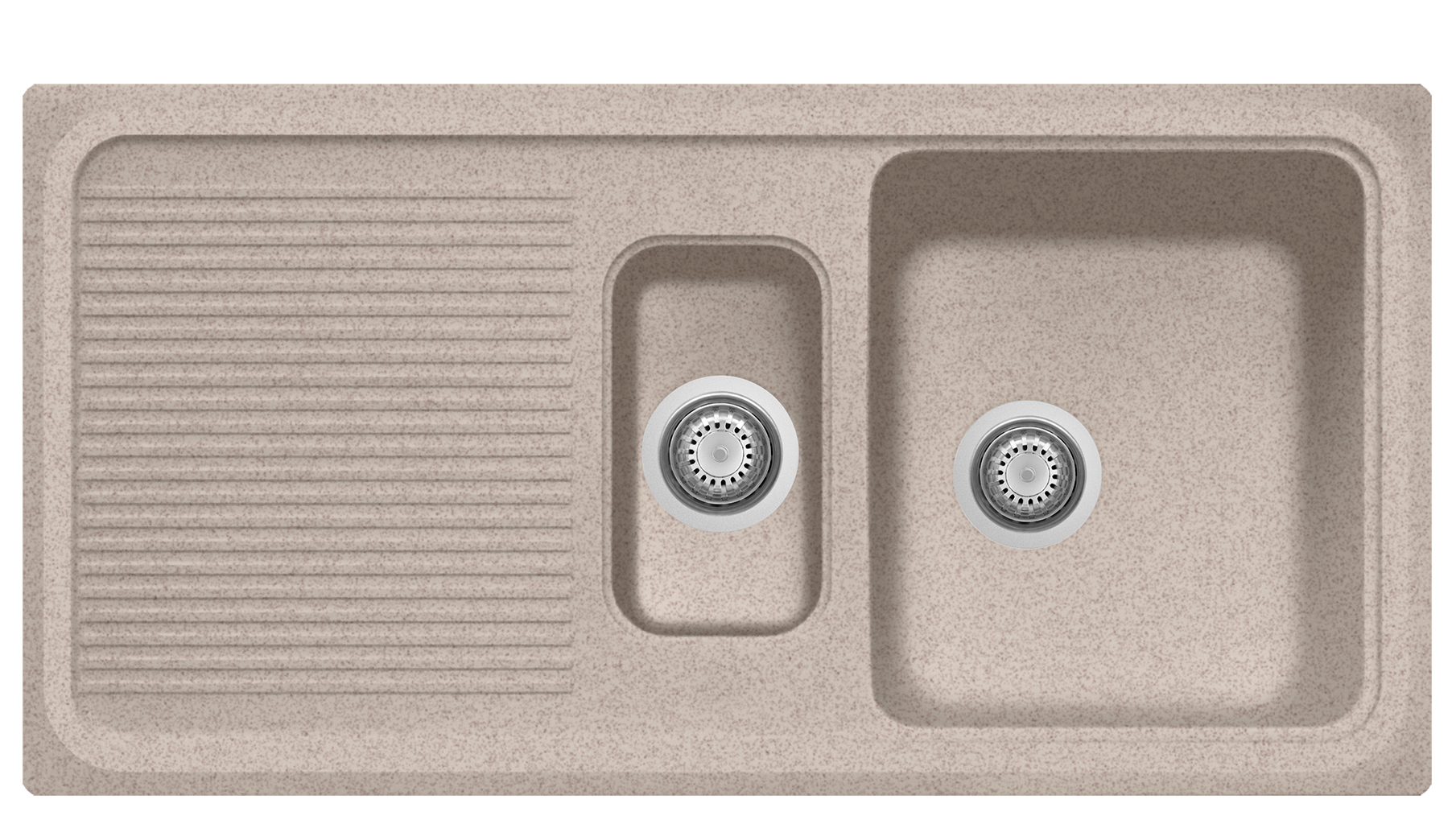 990×500毫米 - 一个半碗水槽加滴水盘,可翻转,有预钻孔,可安装one水龙头和配件。