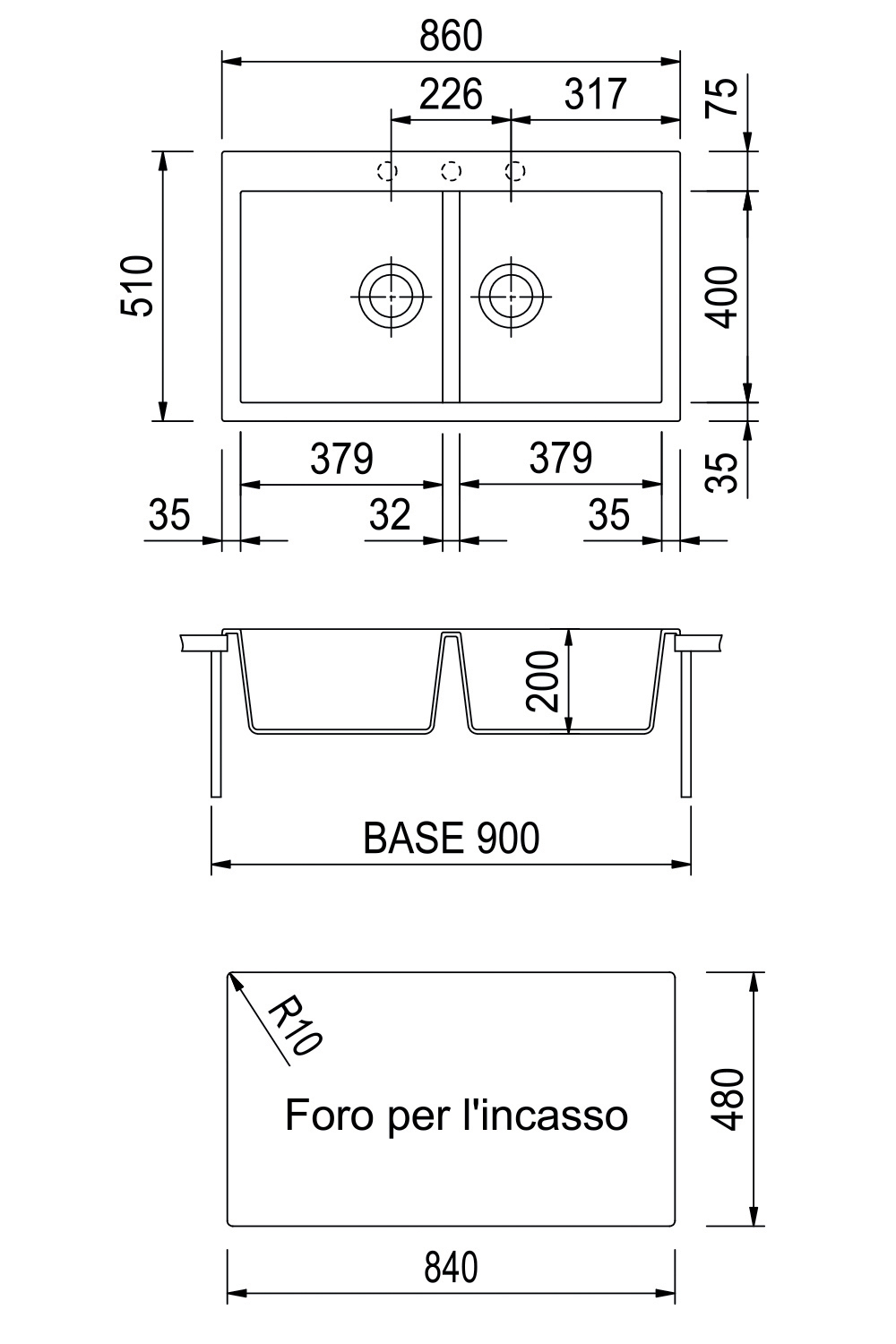860×510毫米 - 双槽水槽,预留安装孔one水龙头及配件