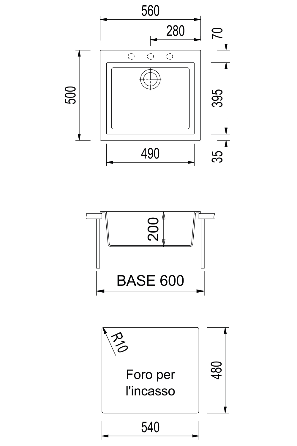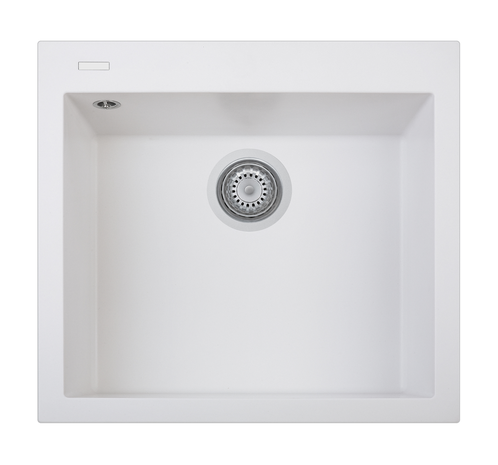 560×505毫米 - 单槽水槽,有预钻孔,用于安装one水龙头和配件。