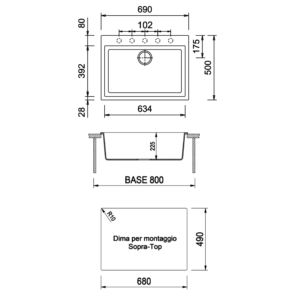 690×500毫米 - 单槽水槽,预留安装孔one水龙头及配件