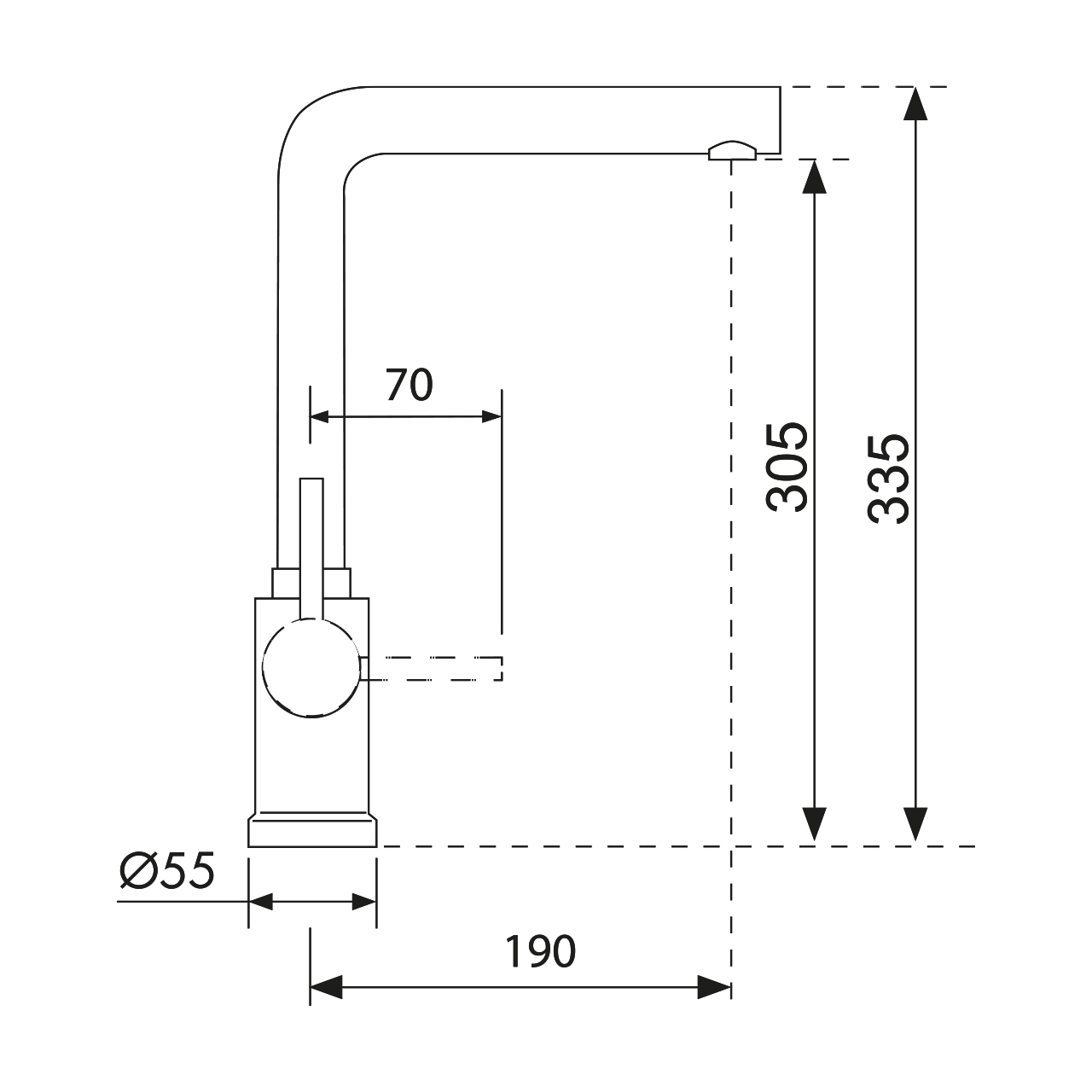 单把手龙头,带 90° 出水嘴。