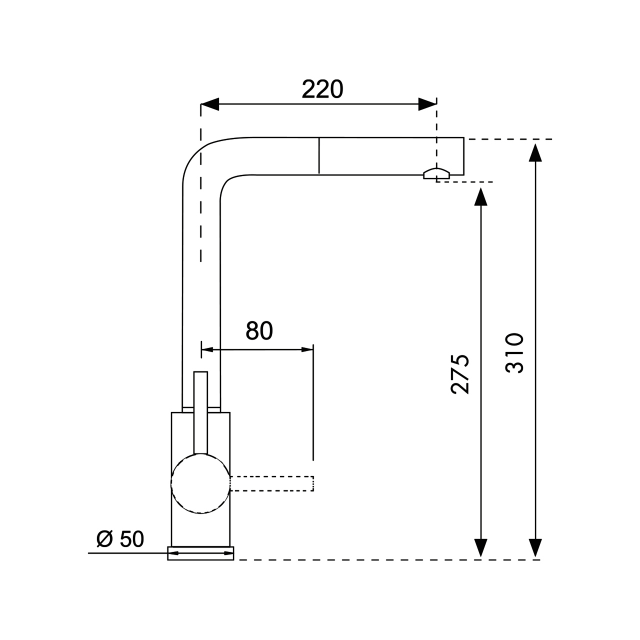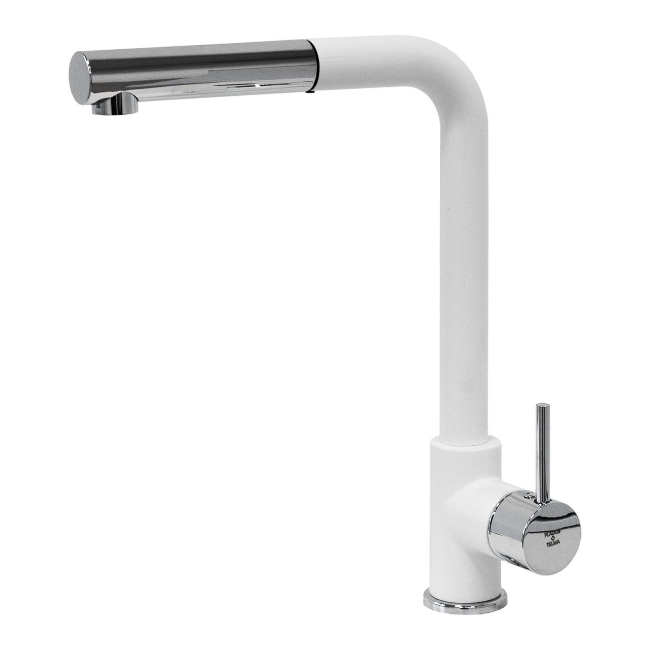 单把手龙头,带 90° 出水嘴和拉出式喷头。