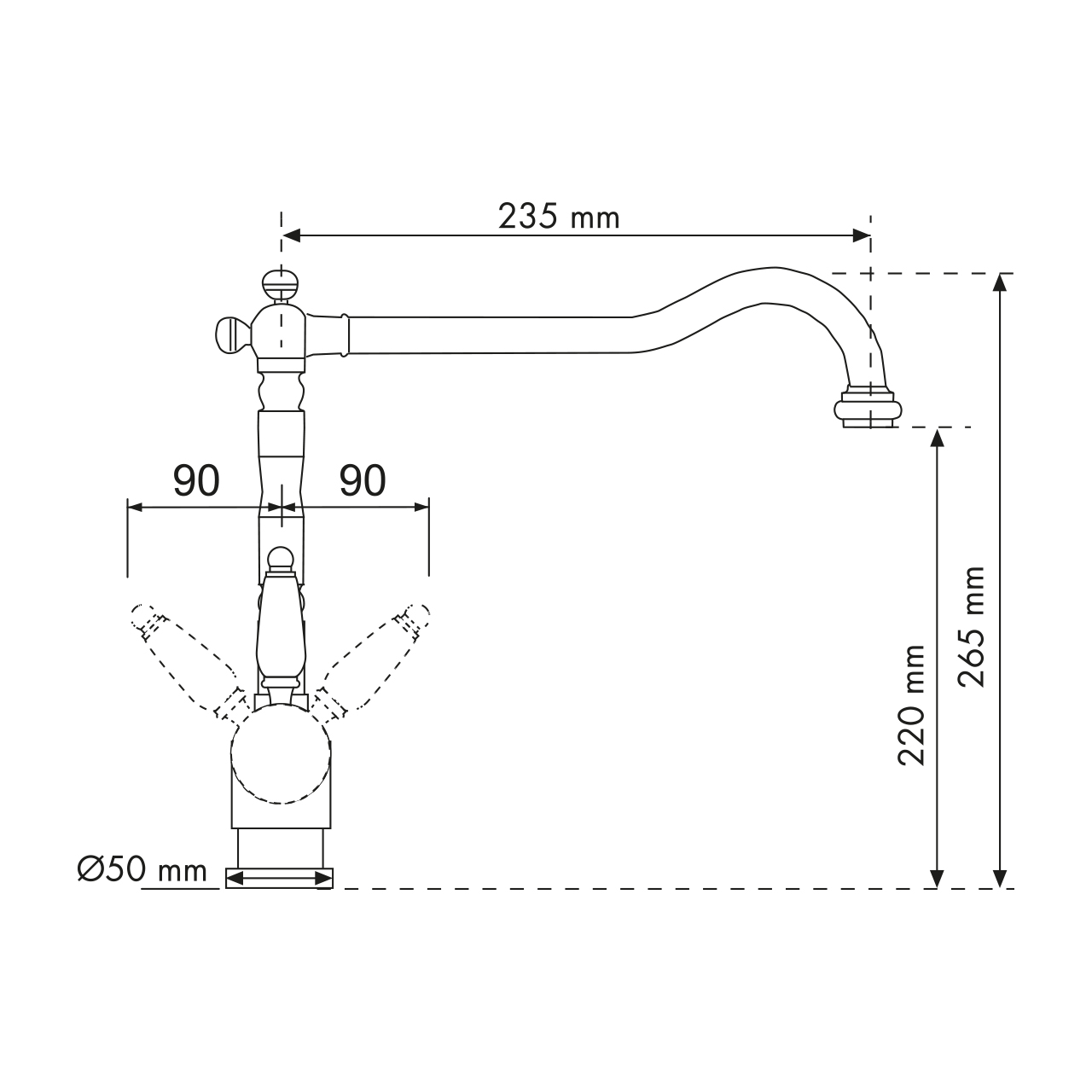 单把手 "老式 "龙头,带窗下折叠出水嘴,最小高度 80 毫米。