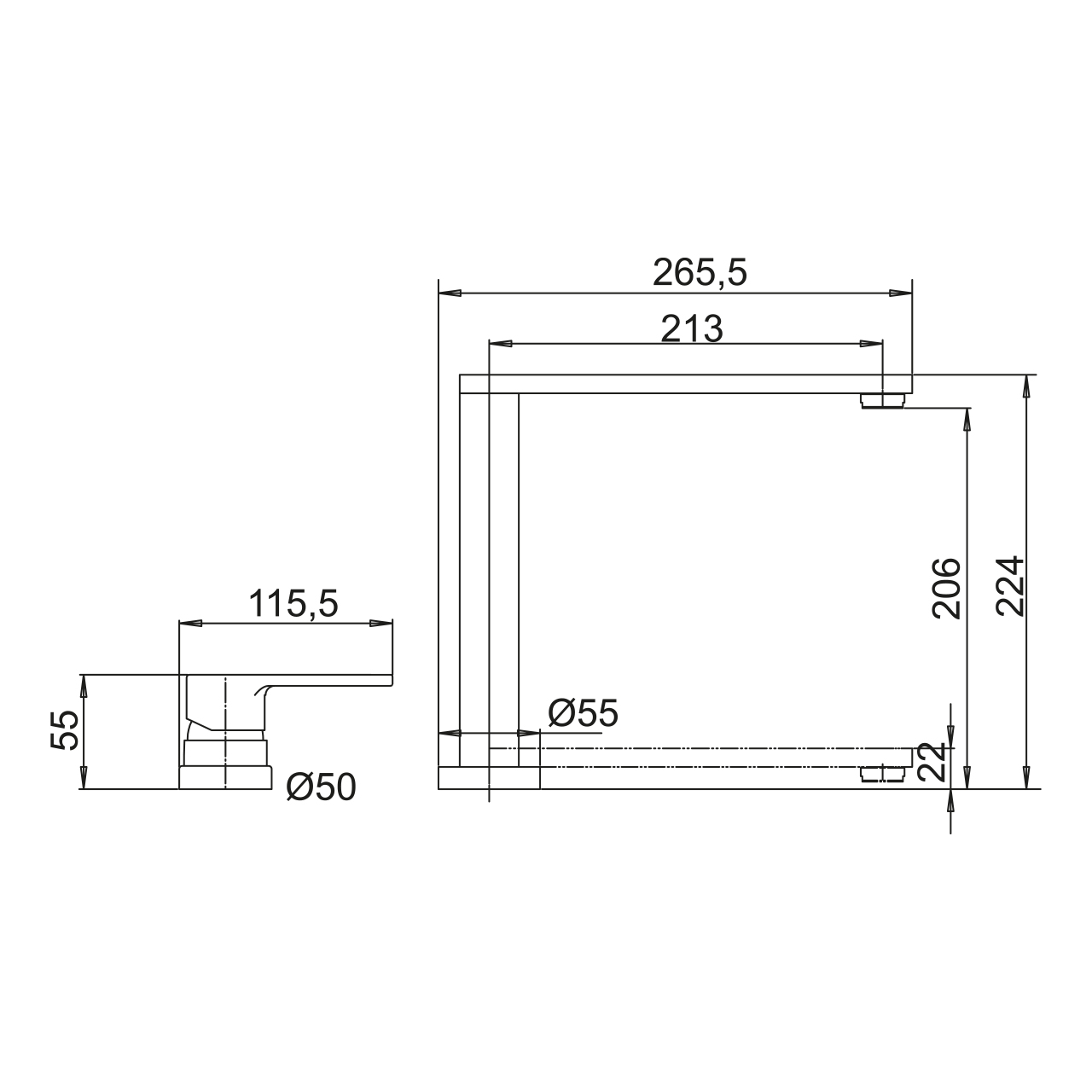 单把手龙头,带窗下出水嘴(最小高度 55 毫米)。