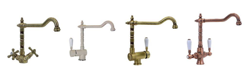 Plados Telma propone 也是用于乡村风格厨房水槽的龙头,以古铜色或铜色表面处理为特色。