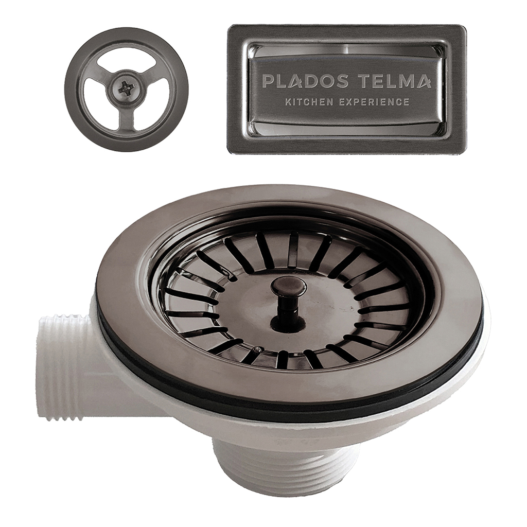 ø 90 毫米 - 单向下水,1 个矩形溢流格栅,1 个圆形溢流格栅,PVD 材质。也可在订购水槽后要求提供。与所有标准 3.5 英寸下水道兼容。
