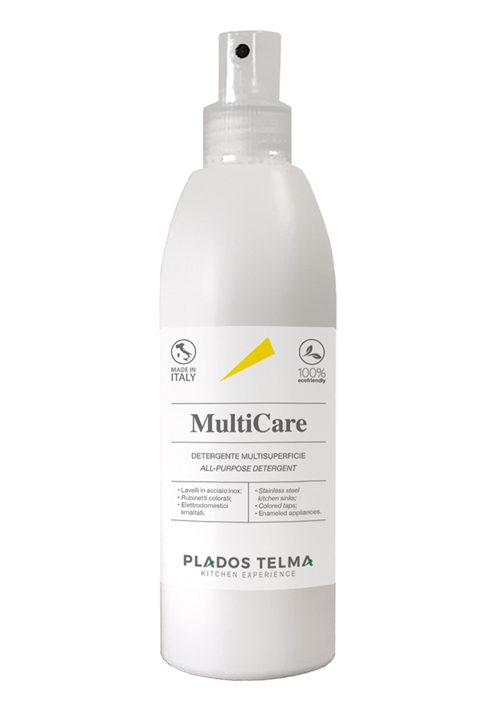 250 毫升 - MULTICARE 是一种多表面清洁剂。它采用可快速生物降解的、公认的和经 ECOLABEL 认证的植物萃取剂配制而成,是清洁不锈钢水槽、彩色水龙头和搪瓷炉灶的理想之选。 MULTICARE 尊重表面,不留痕迹。