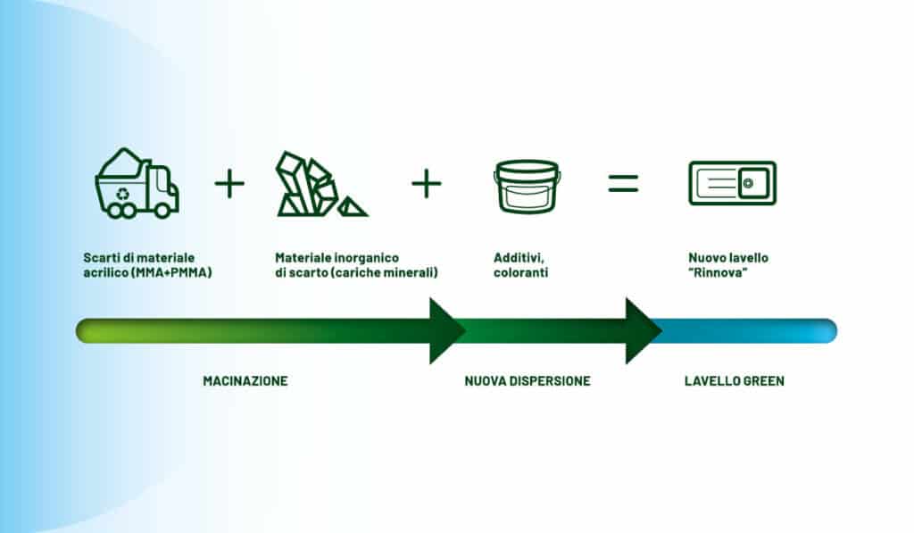 回收的有机和无机原料的再生,否则将被填埋,这使我们不需要求助于不可再生的原生原料,并在源头上获得绿色化合物,保证与传统化合物获得的水槽具有相同的化学、物理、机械和美学特性。
