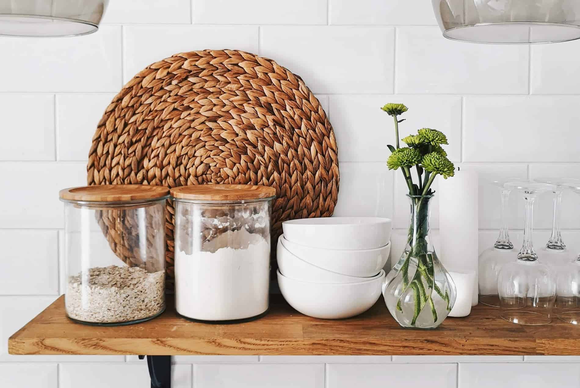 另一个低成本的提示是 安装存储杆和架子 以保持杯子、彩色盘子、复古陶器或现代物品的收藏。